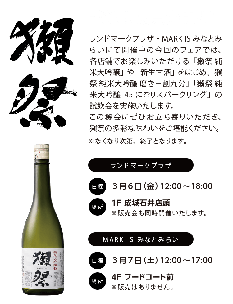 昨年大好評だった【獺祭グルメフェア】を今年も期間限定で開催いたします。