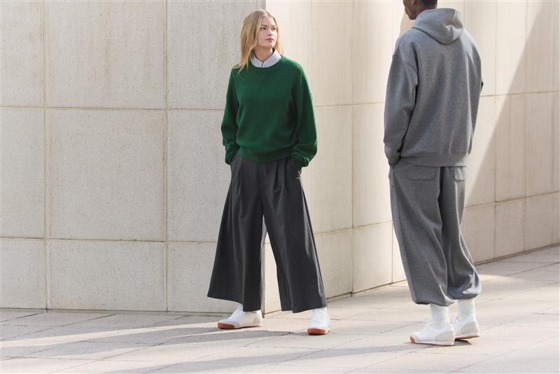 英国人デザイナー、クレア・ワイト・ケラーによる、「UNIQLO : C」(ユニクロシー)のスウェットは、光沢感のある見た目、ハリ感のある素材とボリューム感のあるシルエットが特長で、人気のワイドパンツに加えて、今期はオーバーサイズ スウェットシャツが新登場。