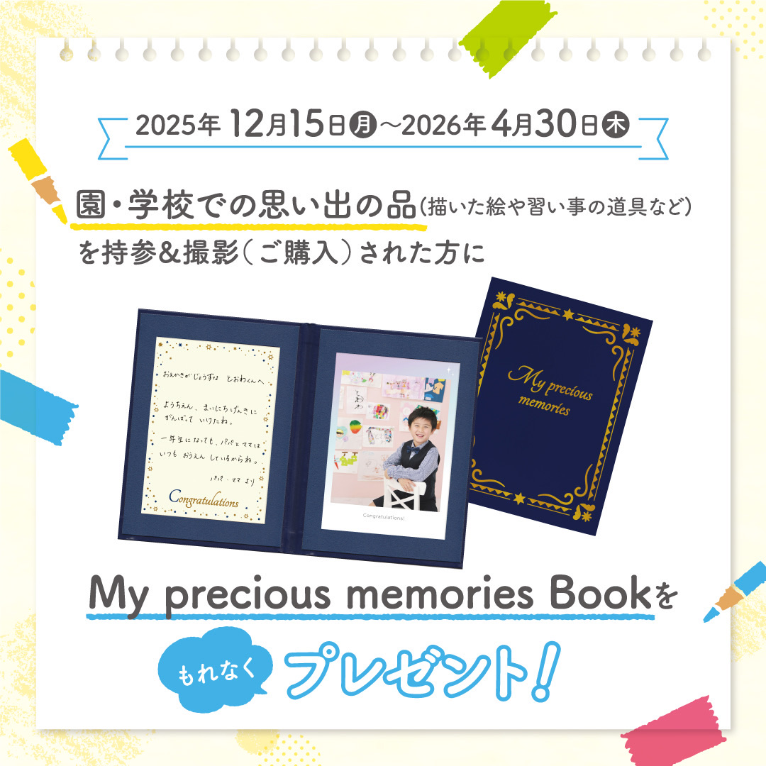 ご持参いただいた園・学校での思い出の品と一緒に撮影(ご購入)された方に、My Precious Bookをもれなくプレゼント♪
