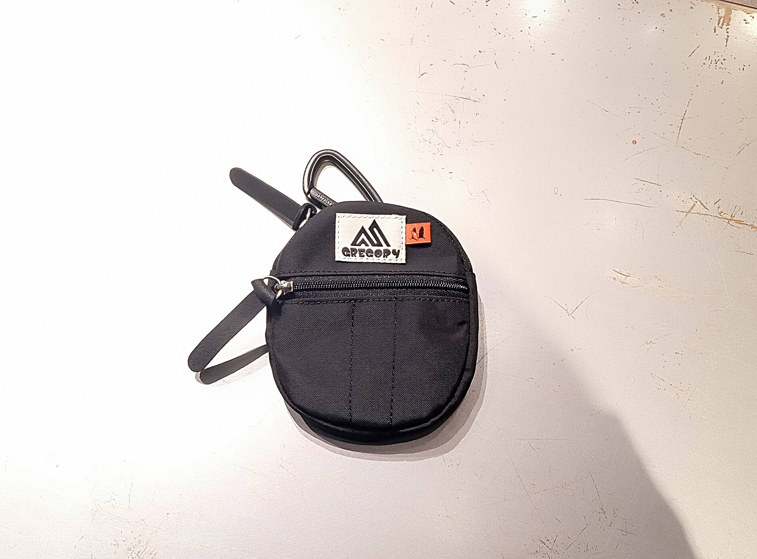 クイックポケット型のコンパクトなラウンドポーチとデイパックのスタイリッシュなデザインを活かし、そのままミニサイズにした可愛らしいポーチです。イヤホンや鍵、リップクリームなどの細かな必需品をしっかり収納できます。カラビナ付きで、バッグやベルトループなどに簡単に取り付け可能です。