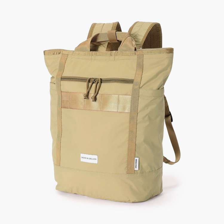BRIEFINGが培ってきた“機能美"に対する追求心と、DEAN & DELUCAによる“食"へのこだわり。そのふたつの要素が見事に溶け合い、魅力的なプロダクトが生まれました。両者のセッションは今回で5回目。パッカブルで2WAY仕様のバックパックは、軽量でコンパクトな設計でありながら、食材を運ぶマーケットバッグとしてはもちろん、レジャーや旅行など日々のさまざまなシーンに対応する柔軟性と実用性を備えています。