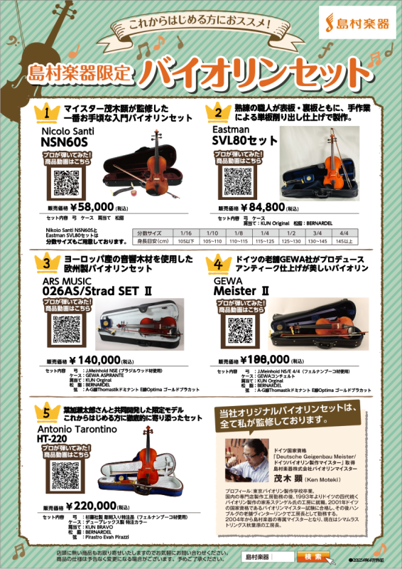 【ヴァイオリン】展示ラインナップ マークイズ葛飾かなまち店