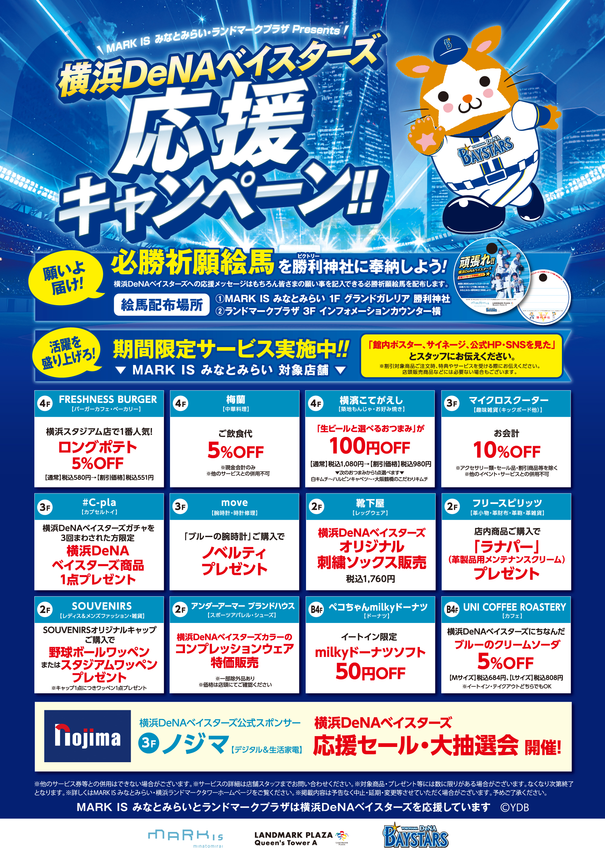 MARK IS みなとみらい・ランドマークプラザpresents『横浜DeNAベイスターズ 応援キャンペーン』を開催します。