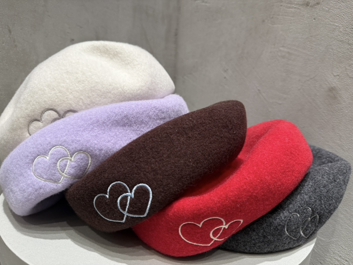 毎年人気のkaorinomoriオークベレー。ウール素材の小ぶりでコロンと丸いシルエットに今年はハート刺繍が施された可愛いデザインです。サイズ調整可能です。
