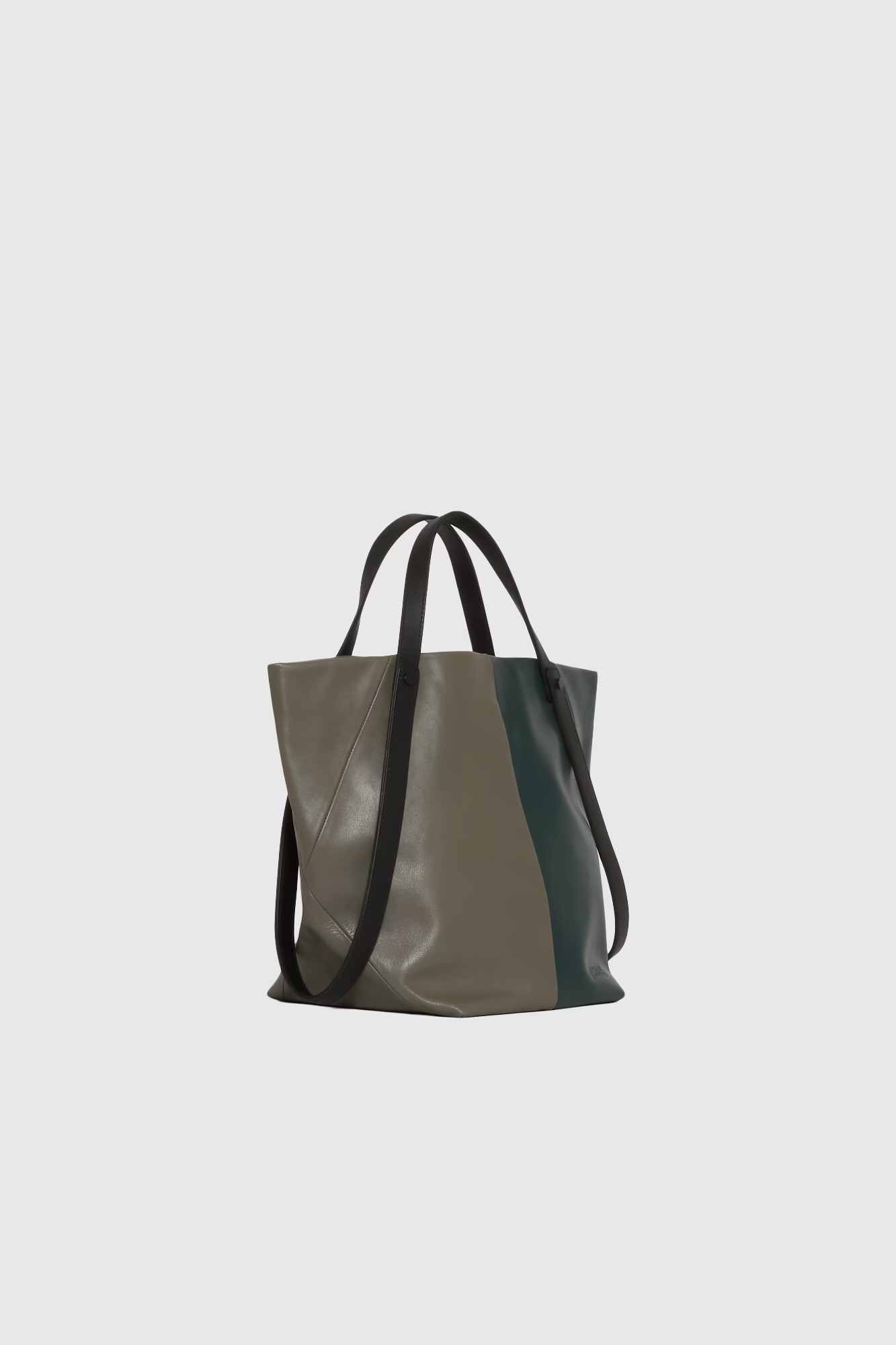 ハンドルの持ち方で2Wayのデザインが楽しめるバイカラートート