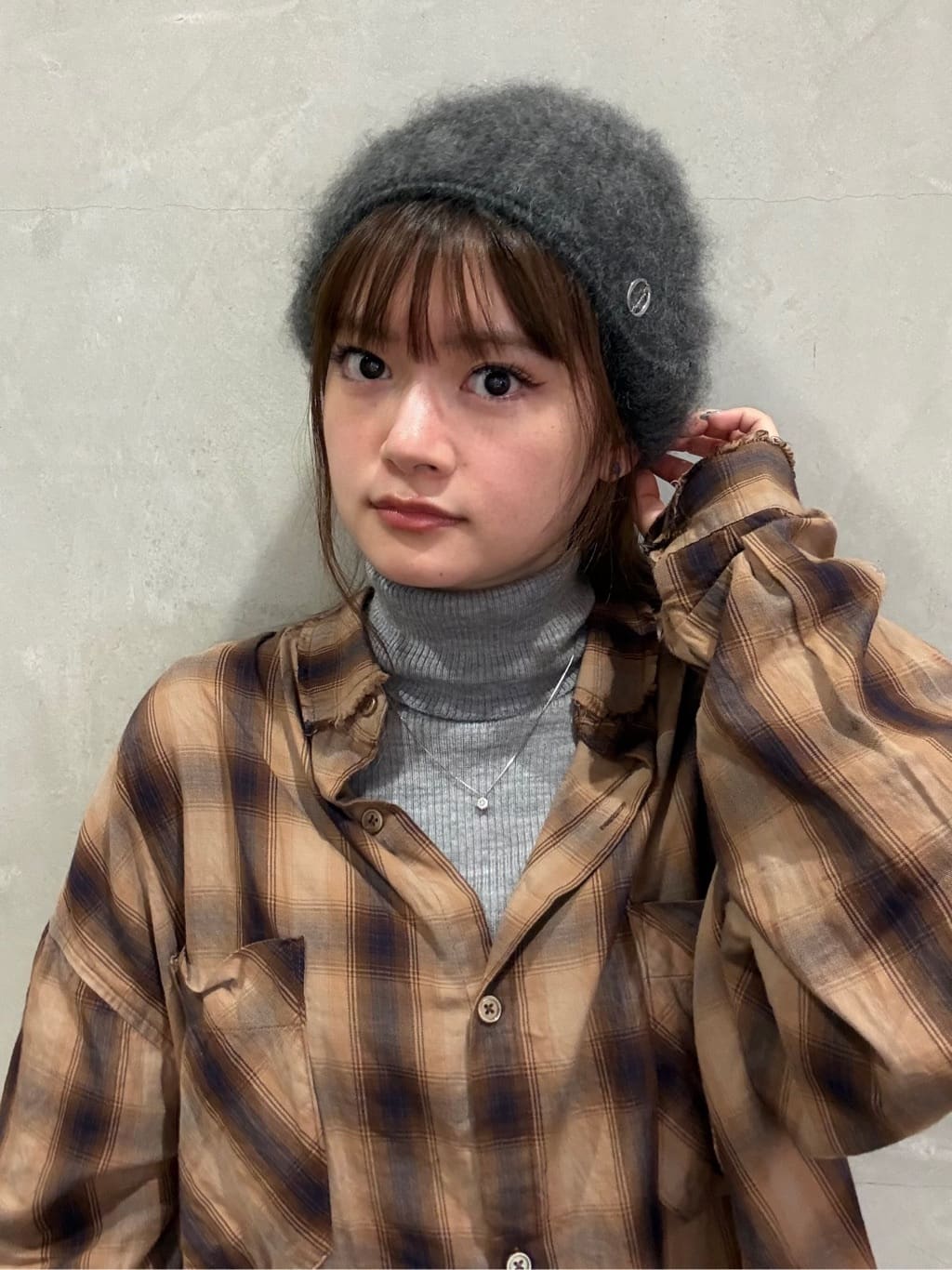 カシミヤ100%の糸で編み立て、毛を丁寧に掻き出す加工を施した、ふわふわ感たっぷりのビーニー。