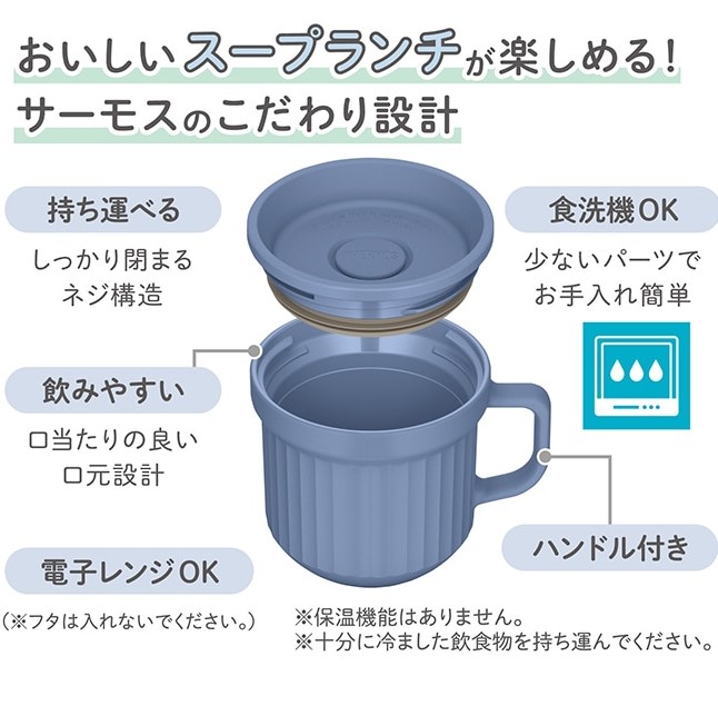 保冷バッグなどに入れて持ち運ぶスープマグ△