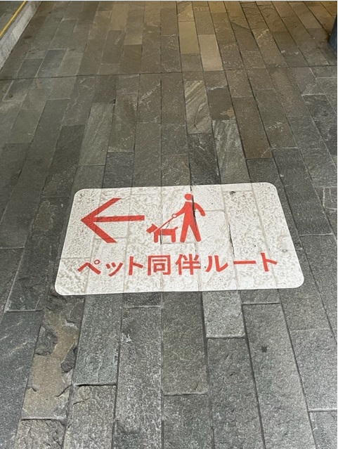 肉球のマークと共に「ペット同伴ルート」を掲示しているので、