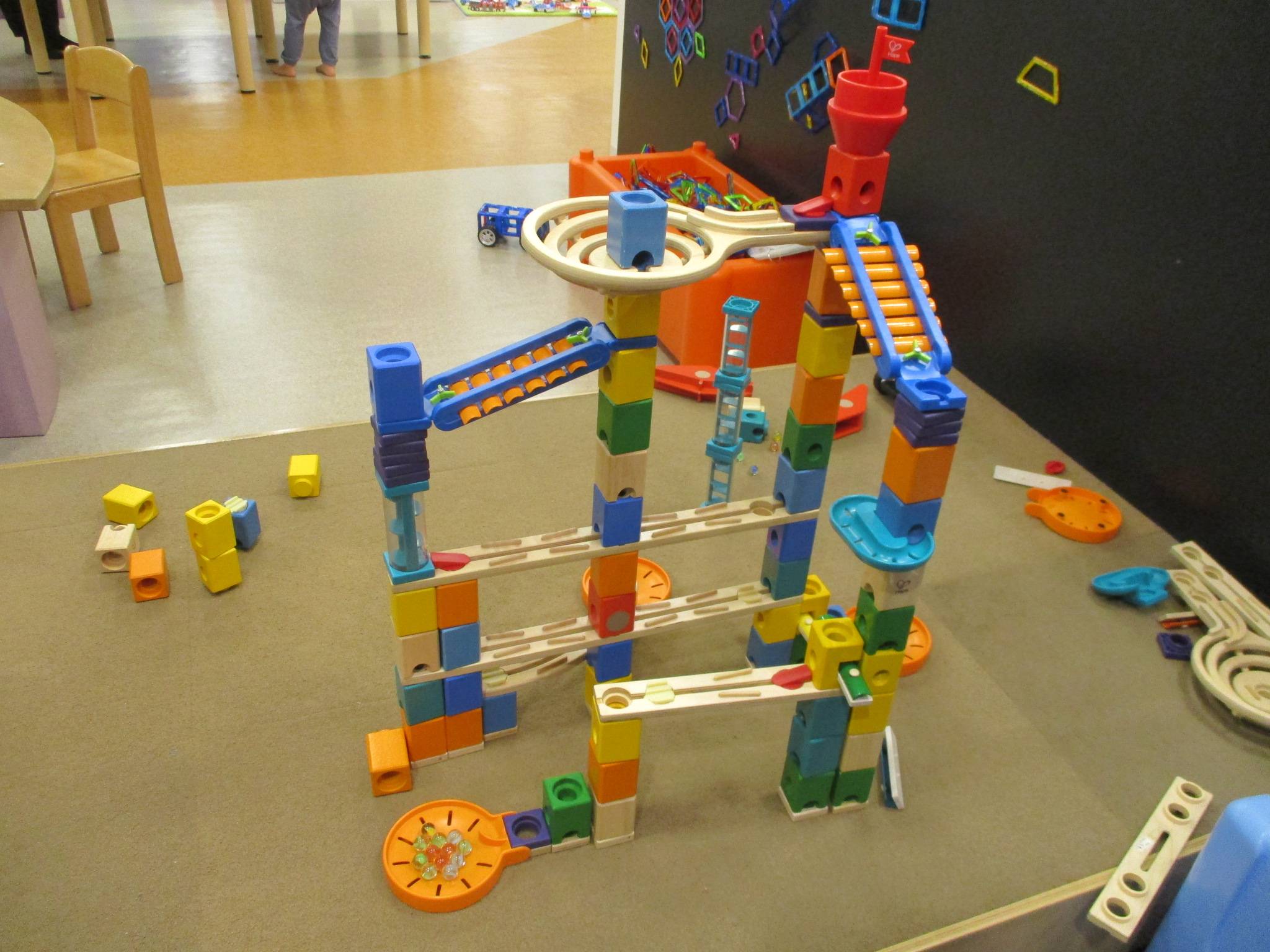 キドキドには今、クアドリラが出ています。ブロックや色々なレールを組み合わせてコースを作りビー玉を転がしてあそぶことができます。