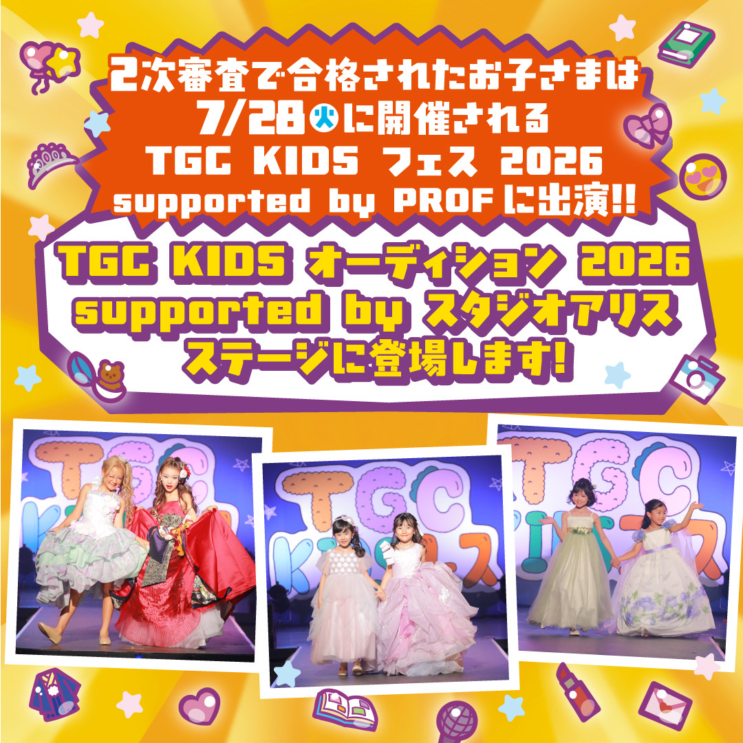 2次審査を合格された方は、7月28日(火)開催の「TGC KIDS フェス 2026 supported by PROF」のステージに登場
