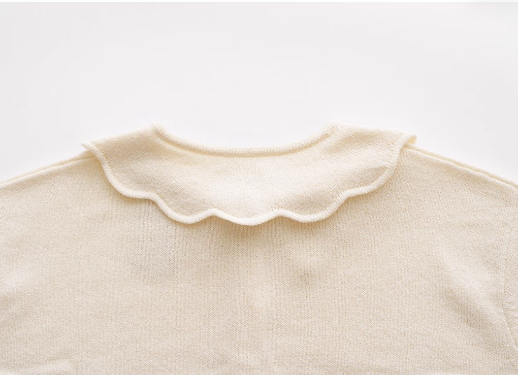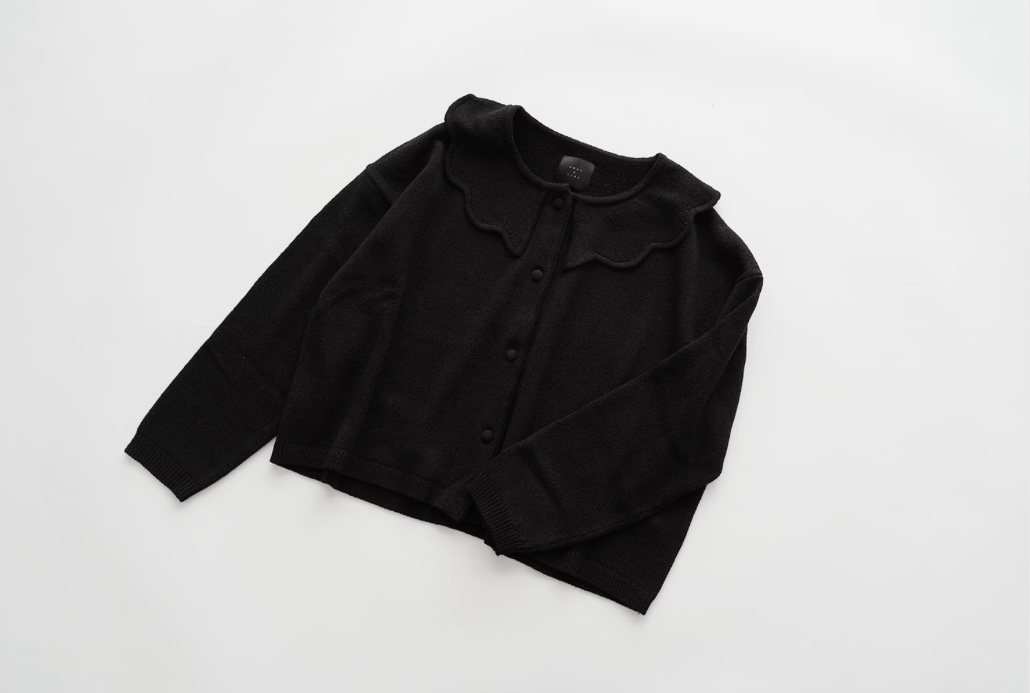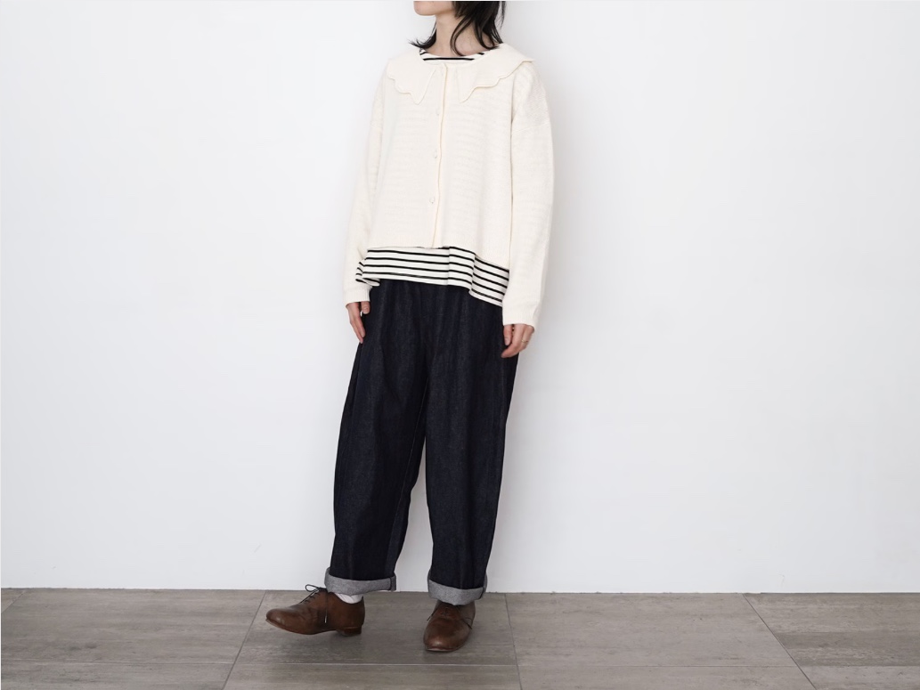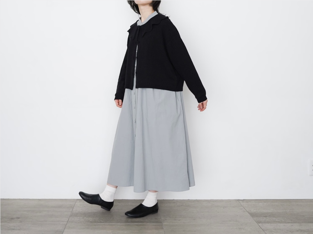 やわらかさとほんのりシャリ感のある軽やかな着心地に仕上がりました。ゆらゆらと動きのあるスカラップカラーが顔まわりを優しく彩ります。トップスとしても羽織りとしてもお使いいただけるアイテムです。