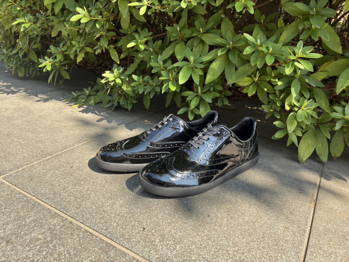 アッパーに使用されたエナメルレザーは撥水性があり汚れに強いため、