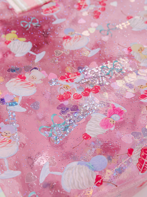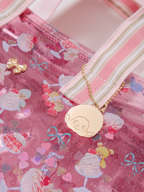 クリアPVC+ スパンコールのプールトートバッグにモンチッチコラボ柄登場☆コラボアイテムはモンチッチのお顔の限定チャーム付き♪ キラキララメに揺れるスパンコールがハートをわしづかみ! マチが広いので、プールバッグとしてだけでなくお子様のスクールバッグやサブバッグとしてもご使用いただけます。